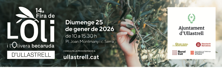 Diumenge 25 de gener de 2026 de 10 h a 15:30 h, el c/ Serra i Plaça Joan Montmany d'Ullastrell s'omplirà de productors locals i convidats amb una gran varietat de productes relacionats amb l'oli i derivats de l'oliva. Els acompanyaran també paradistes d'alimentació i oferta gastronòmica variada per poder dinar i aprofitar la fira fins al final. Pels volts d’una trentena de paradistes doncs oferiran el bo i millor del seu producte, i gaudirem d'un munt d'activitats que amenitzaran la jornada.